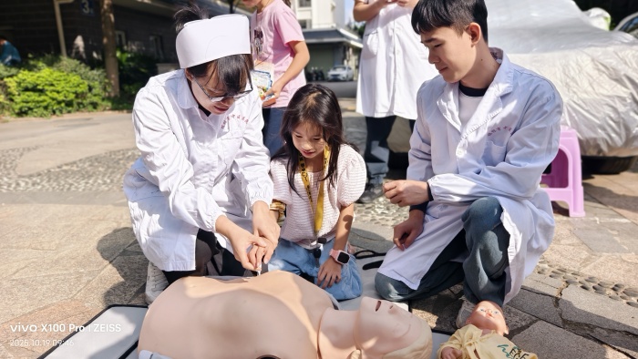 医护人员通过模拟人道具逐步演示心肺复苏的操作流程,重点讲解按压位置、深度、频率及人工呼吸的要点,并邀请市民实践操作。许多居民在专业指导下认真练习,初步掌握基本急救方法。