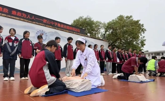 为普及急救知识,提升中学生自救互救能力,讲好医院故事。近日,桂林市中西医结合医院团委组织青年医护急救志愿服务队成员进校园开展巡讲,为雁山中学全体师生1200多人带来了一场生动而实用的急救技能培训课。